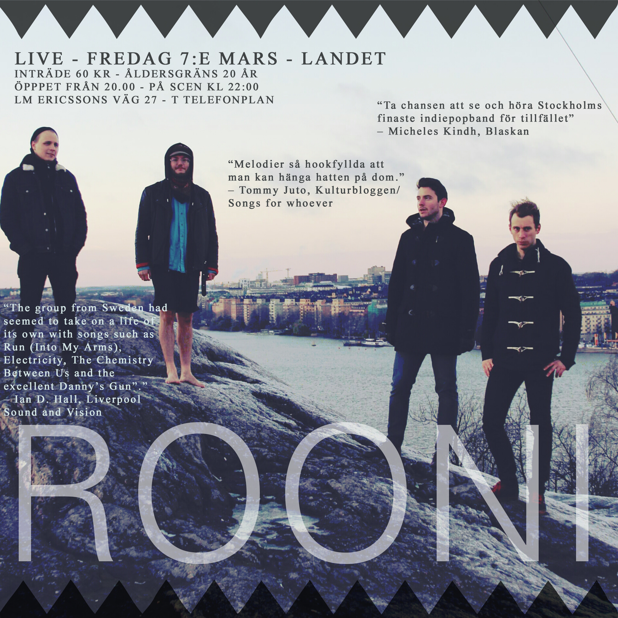 Posted on March 6, 2014 Rooni live på Landet på fredag! Share this: Click to share on X (Opens in new window) X Click to share on Facebook (Opens in new window) Facebook Like Loading... Related